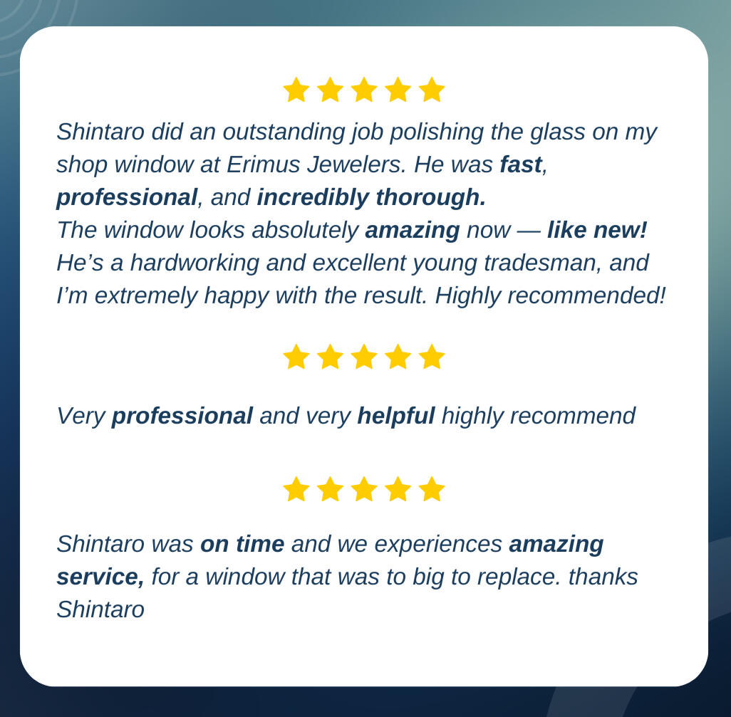 high-end glass restoration, delivering professional polishing and resurfacing services that restore glass to a Flawless,